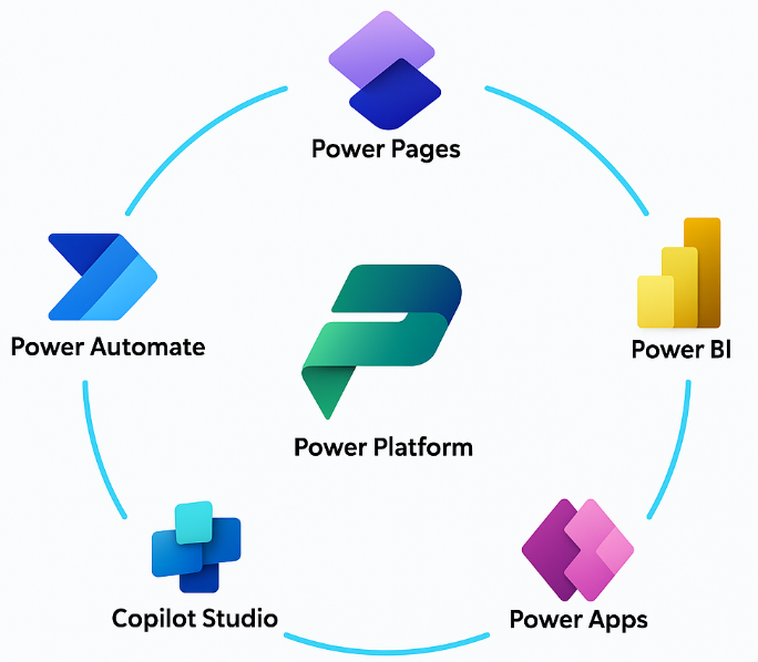 In plaats van meerdere losse tools, biedt het Power Platform één geïntegreerde omgeving voor: